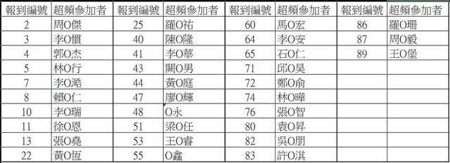3.名單前面的數字,就是你的快速報到號碼,請你幫忙記起來,才不會影響其他參加者的進