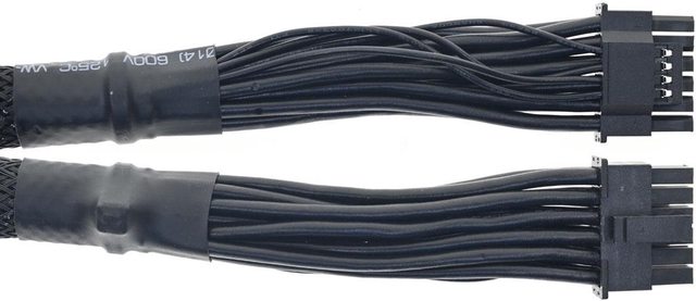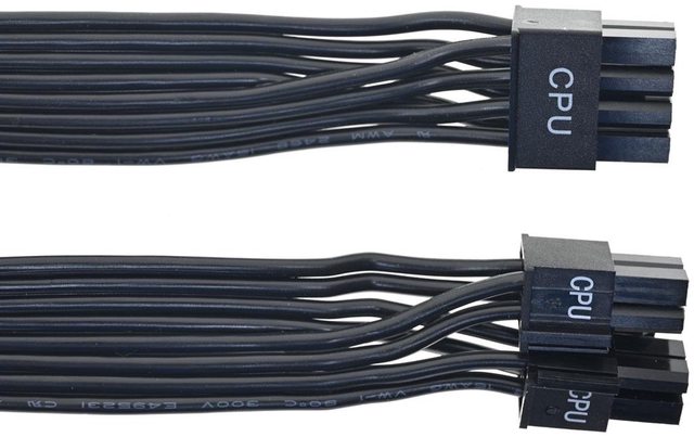 ▼2條處理器電源黑色帶狀模組化線路,提供1個EPS 8P接頭及1個EPS 4+4P接頭,16AWG線