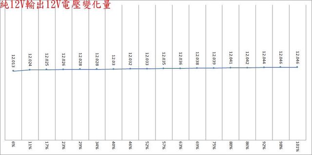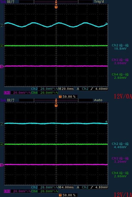 ○輸出無負載時12V有小振幅低頻漣波,輸出12V/1A時有最小12V漣波,輸出12V/8A以上