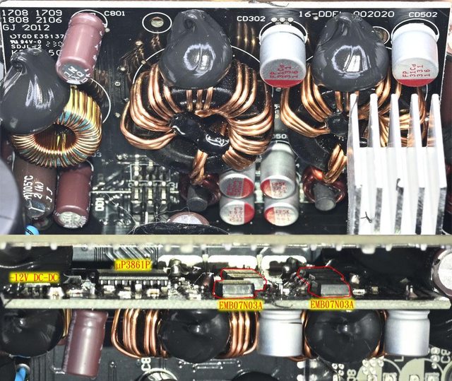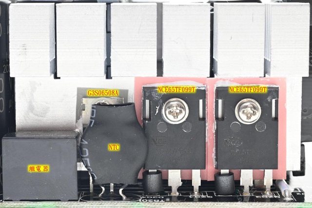 ○APFC/一次側MOSFET採用NCEPOWER無錫新潔能,APFC二極體採用GPT泰科天潤,二次側