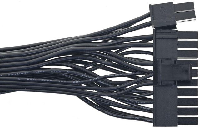 ▼1條主機板電源黑色帶狀模組化線路,提供1個ATX 20+4P接頭,18/22AWG線路長度65公