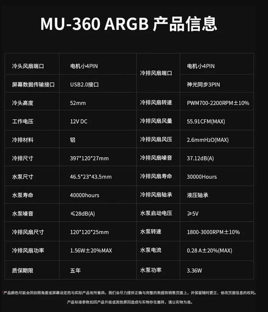鑫穀近日在京東上架了新款昆侖山海 MU-360 ARGB 一體式水冷散熱器