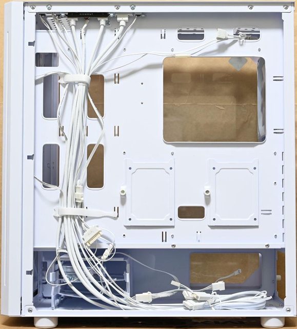 ▼機殼左側配置圖,主機板/介面卡安裝區與電源艙採隔離設計。底板上方/前端/右上設