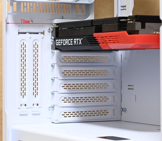▼垂直安裝七彩虹戰斧GEFORCE RTX 3050 DUO 8G顯示卡(253.4×132.5×41mm)時,顯示