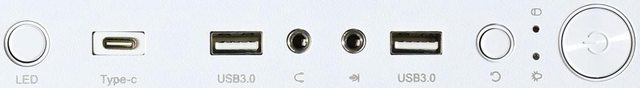 前置I/O面板:2個USB3.2 Type-A、1個USB3.2 Type-C、耳機3.5mm插孔、麥克風3.5mm插