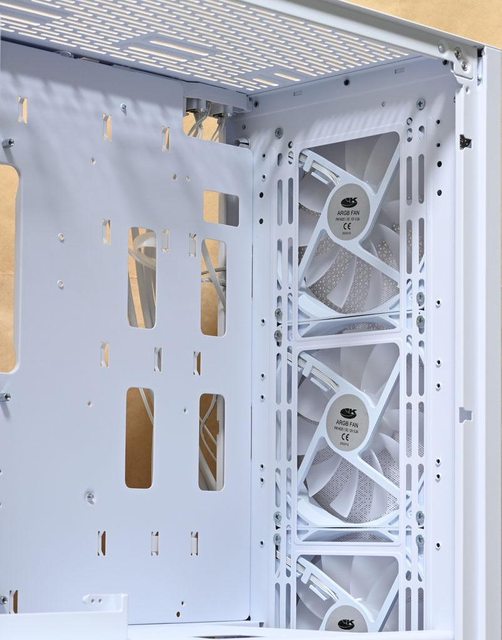 ○前方/後方/頂部可裝最多7個120mm風扇,前方預裝3個140mm ARGB風扇,後方預裝1個