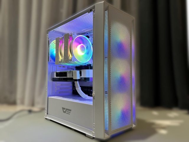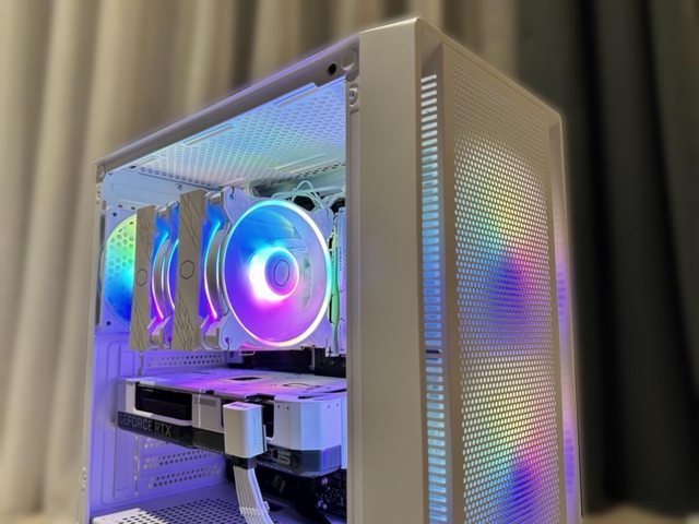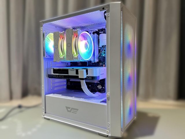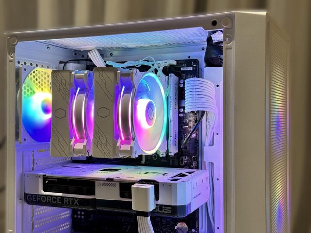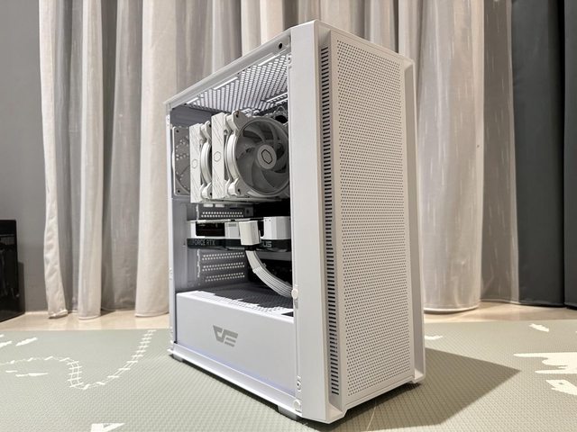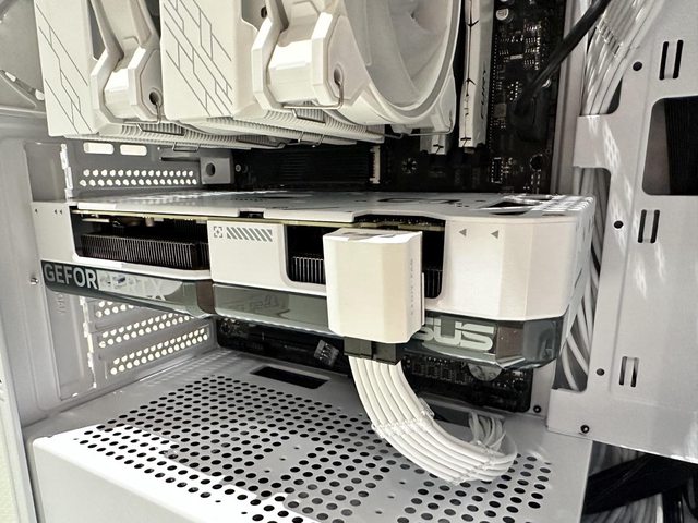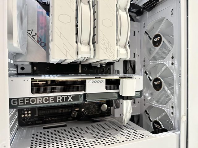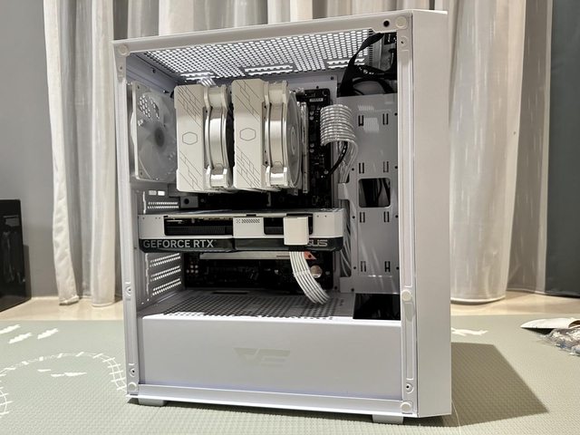 散熱器使用酷碼Hyper 622 Halo白色版,顯示卡為華碩RTX4070 Super Dual White,雙風 扇267mm的長度個人覺得剛剛好,能夠不遮擋前方SSD,就可惜這張顯示卡不夠白,印堂發 黑啊! https://i.imgur.com/AOJrdLc.jpg