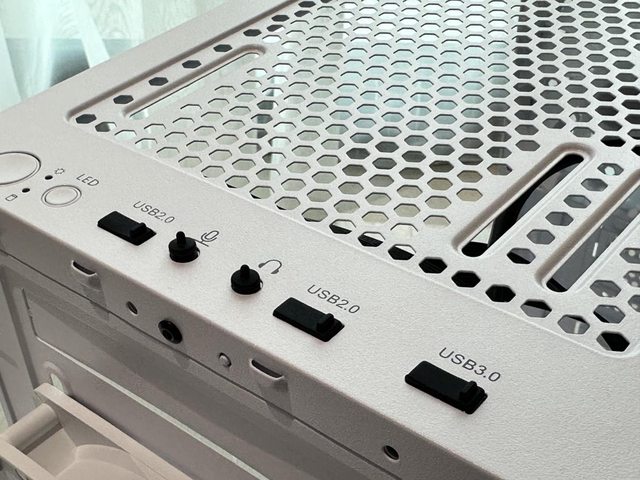 左側板採用打孔玻璃透側,在千元出頭等級的機殼屬於常見的設計方式。 https://i.imgur.com/N5As4Yy.jpg