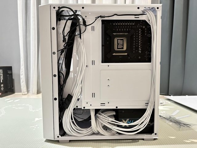 介紹暫時到此,接下來裝機展示一下。 本次裝機暫以手上較高階的i7-12700K+Z690及RTX4070 Super白色配置及全漢Hydro PTM X PRO 1000W 短機身電源供應器搭配淘寶訂製線作演示。 DK353整線深度對於訂製線來說幾乎沒問題,不過前IO線材還是佔據不少空間,建議使用 設置的許多束線帶固定孔好好整理。 https://i.imgur.com/fJtB6Oo.jpg