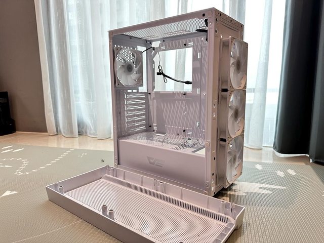 主機板底部、電源倉上方設有通風開孔,能再安裝2顆12cm風扇,整機最多能裝8顆風扇, 擴充性還算不錯。 https://i.imgur.com/iseJpiw.jpg