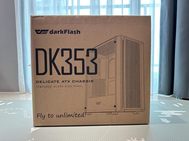 大飛 DarkFlash向來以推出平價、CP值高的產品著稱,本次開箱的DK353機殼就是其最新 推出的平價機殼,官方定價是黑色版$1190、白色版$1290,屬於較能輕鬆負擔的價位。 本次開箱白色版的DK353,包裝印有斗大的型號及機殼45度角展示照片。 https://i.imgur.com/pIS7OE9.jpg