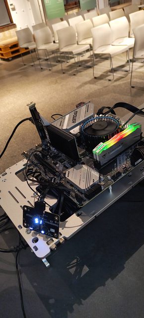 現場展示機的照片 水冷正常 沒有NZXT了 MSI跟MH聯名的零組件 主機板超級漂亮 質感超級棒 要是有機會買得到 我推薦這張列入必買名單 https://i.imgur.com/tacpKRn.png