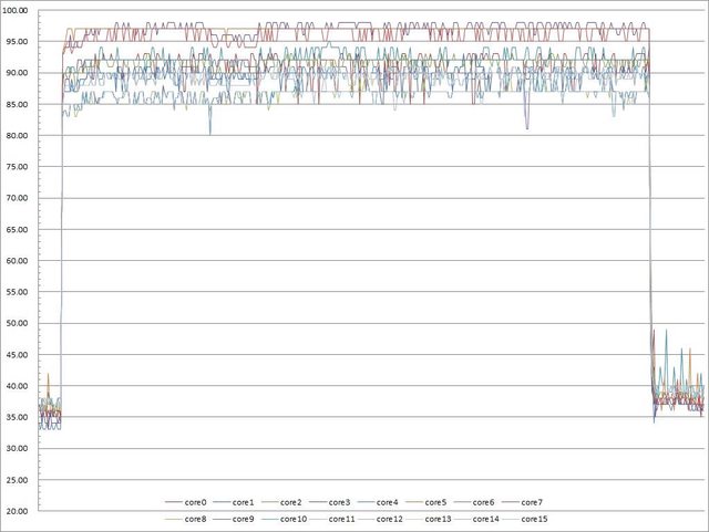 ▼高負載30分鐘CORE TEMP溫度記錄圖