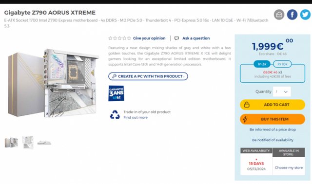 在法國在線商店上的售價為1,999歐元(約2,166美元或1,700英鎊)。