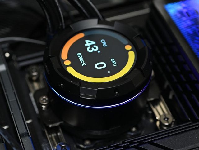 PWM調速及3pin ARGB燈光控制,線組具備公母串聯連接設計。水冷頭頂部內建2.1吋LCD螢