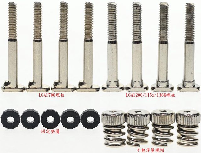 ▼LGA1700螺柱、LGA1200/115x/1366螺柱、固定墊圈、手轉彈簧螺帽