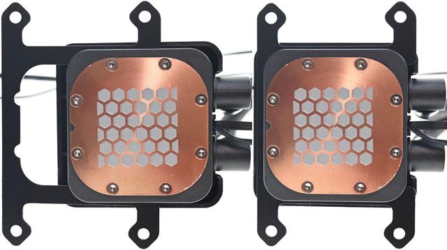 AMD AM5/AM4平台,新一代雙腔室搭配專利分流水道幫浦可提升水冷液壓力及流量,銅製