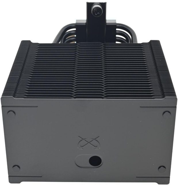 ▼從側面看向後偏置設計,後方下面6片鰭片縮小,提供Intel LGA20xx平台另一側記憶體