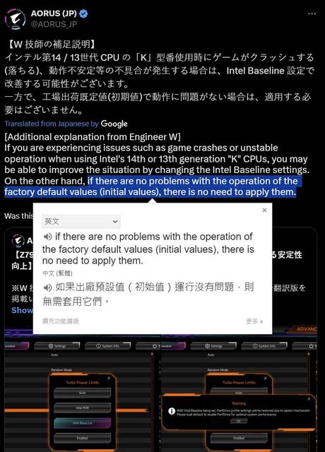 簡單來說,如技嘉日本在 TWITTER 上所說,沒事不要開啟技嘉 INTEL BASELINE 模式。