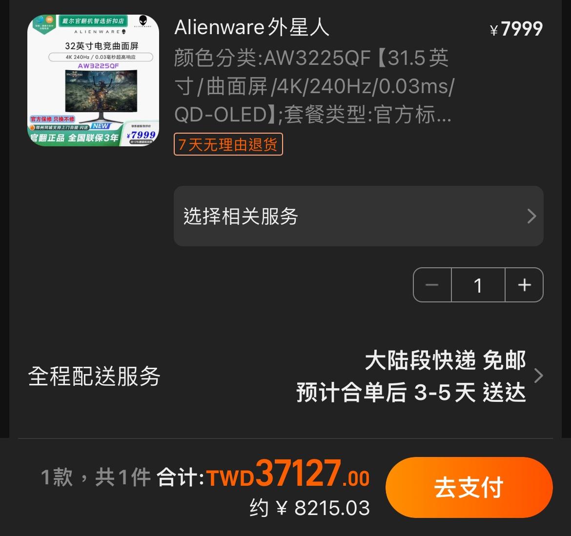 → a5150219: Aw3225qf從日亞買比較便宜,不過台灣買 203.204.89.230 05/06 22:24