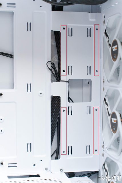 硬碟籠有兩處可以作調整,若是15cm的PSU可以將硬碟籠往機殼後端調整一格