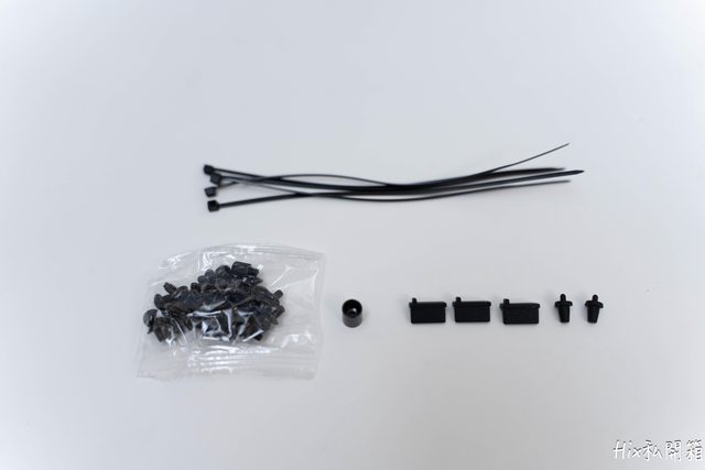 零件有束帶、I/O防塵塞,銅柱的安裝套筒及一堆可能用得到的螺絲