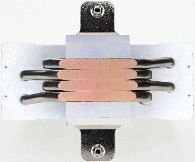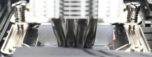 ▼處理器接觸面採熱導管直觸設計,4支外觀鍍鎳的熱導管削平,露出銅原色