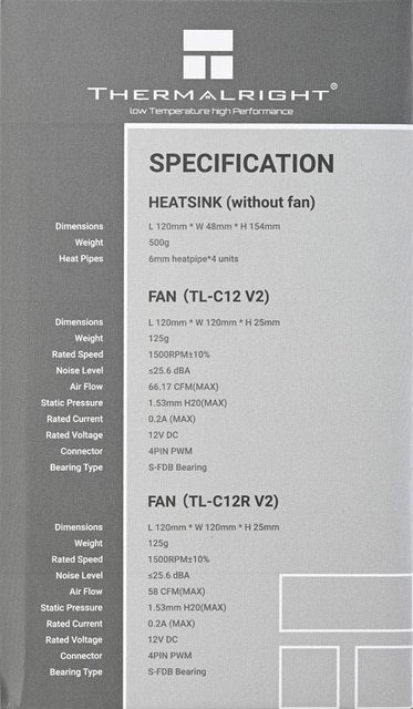 搭配45層鰭片,隨附1個S-FDB軸承TL-C12 V2風扇及1個S-FDB軸承TL-C12R V2反向風扇。