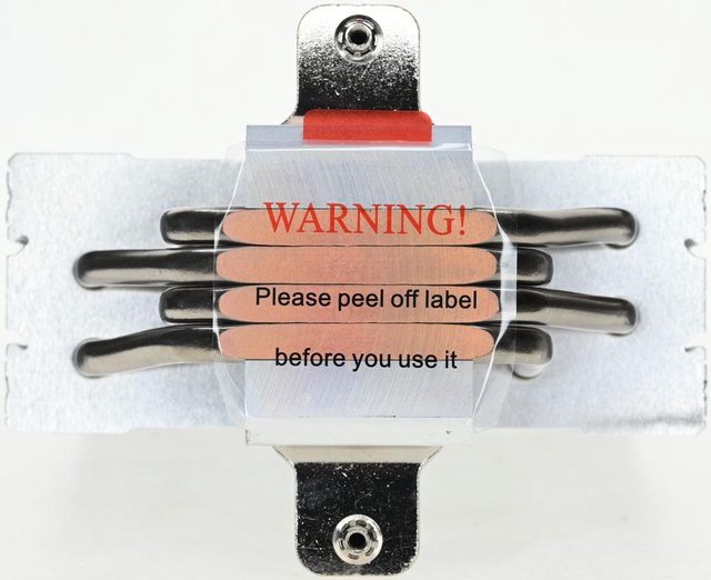 ▼散熱器底座的處理器接觸面有保護貼,上面用英文標示"警告!使用前請撕除保護貼"