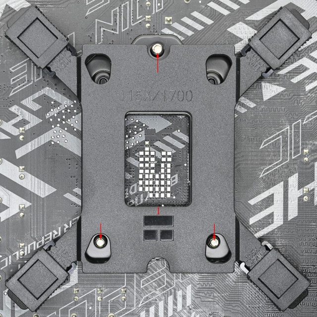 ▼安裝於Intel LGA1700/1200/115x平台時需使用Intel背板,背板四個角有可調整固定鎖