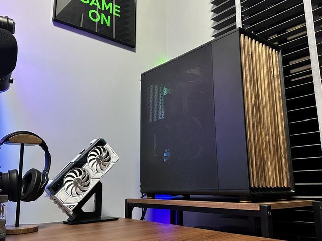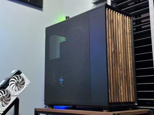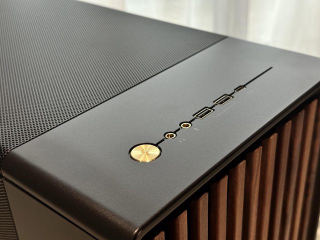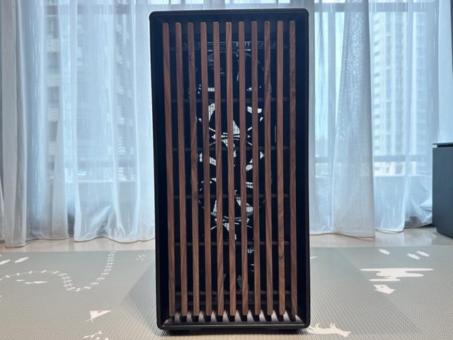 蓋上胡桃木面版。至於為何機殼顏色一直變,是因為機殼旁邊螢幕的後方,個人假掰地裝