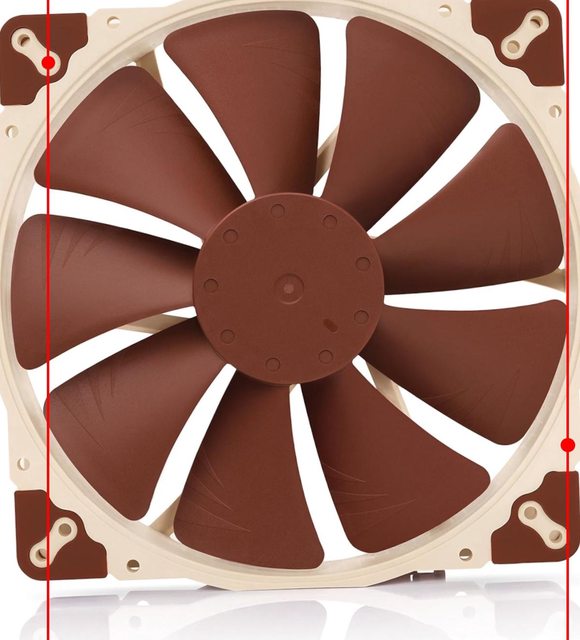 用貓頭鷹20cm風扇的官方圖說明,風扇需要向左傾斜大概2度然後鎖左上及右下這兩個鎖