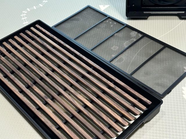 木質前面板後方設有尼龍濾網,可拆下水洗。