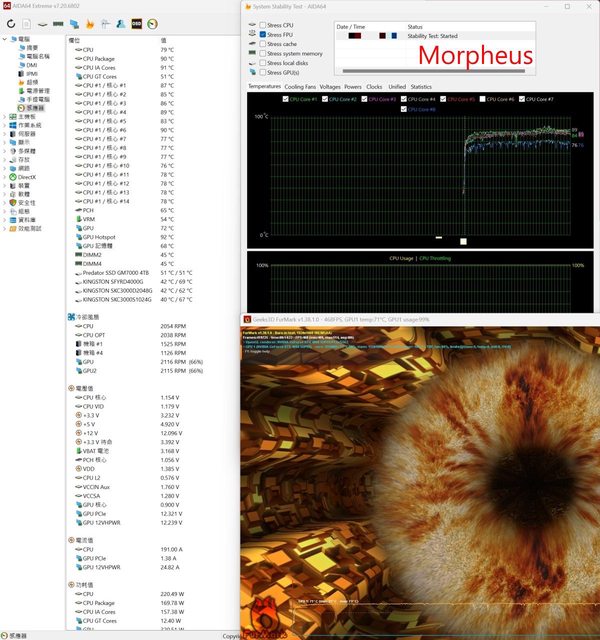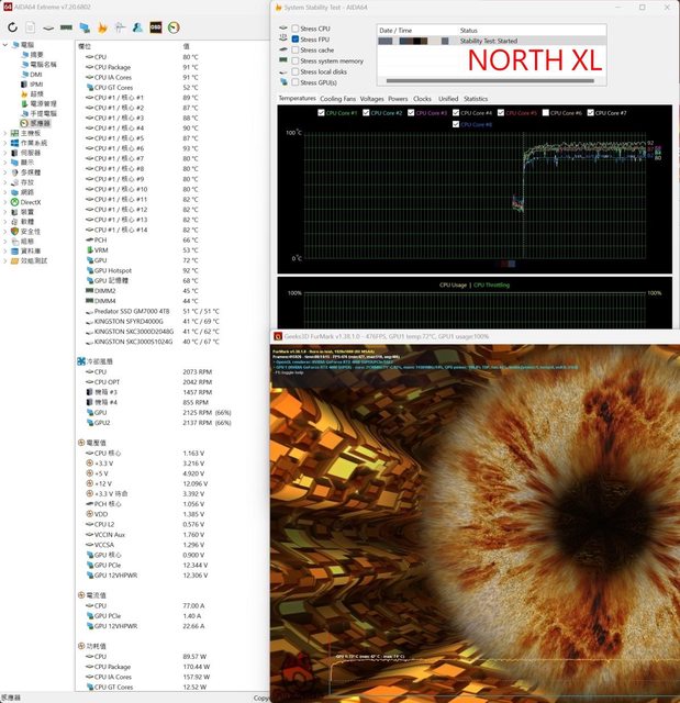 測試結果如下,雙烤15分鐘後North XL的CPU Package比Morphes高1度,6顆P核心平均高