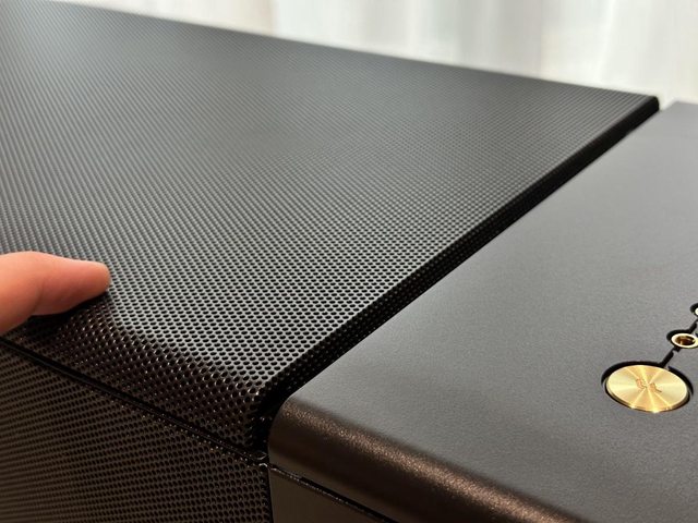 蓋上側板,Mesh網板的開孔有若隱若現的透視效果,能看到內部設備。
