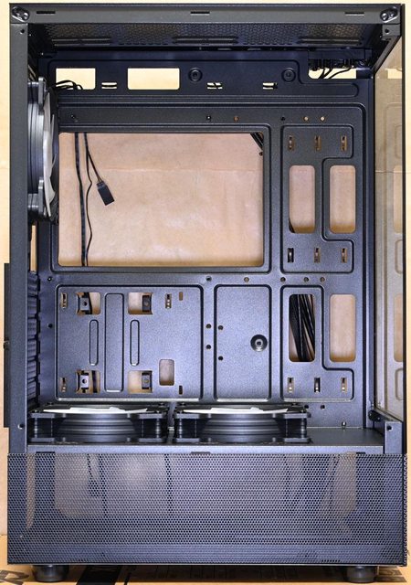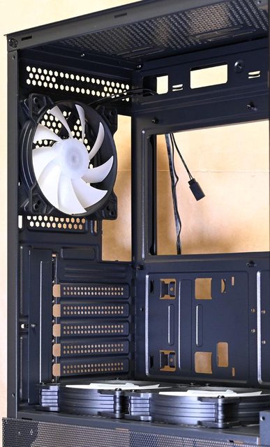 ●電源艙隔板/後方/頂部提供最多5個120mm風扇安裝空間,電源艙隔板預裝2個120mm