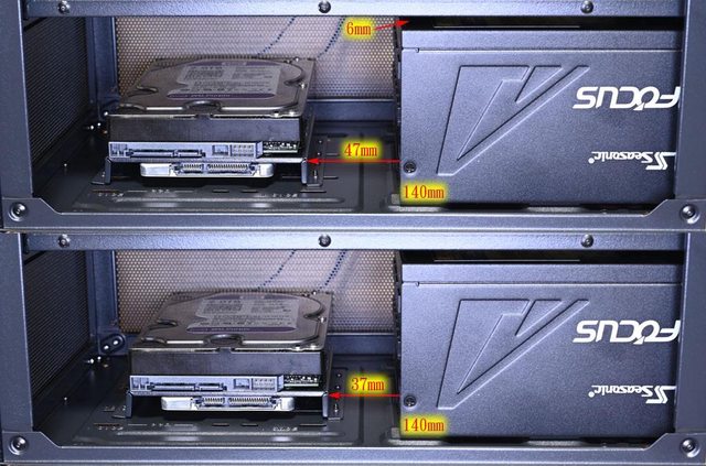 離最小37mm,最大47mm,電源供應器頂端與電源艙頂部距離6mm
