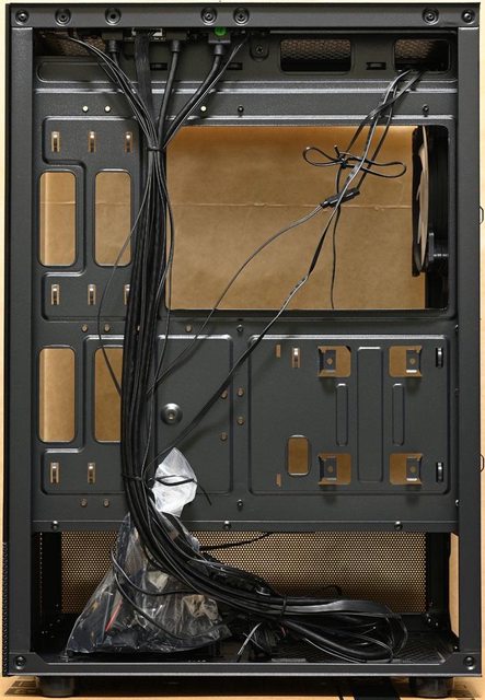 ▼後方預裝1個120mm ARGB主控風扇,主機板安裝底板上方鏤空,方便拆裝CPU散熱器背板