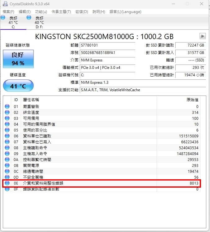 推 ragnarok1992: 前兩週看自己的KC2500系統碟0E有9 36.231.80.164 05/21 21:31