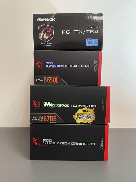 ▼從手上有的itx主板選一二張難裝的試試,分別是:ROG的Z790-i、X670E-i、B650E-i和As