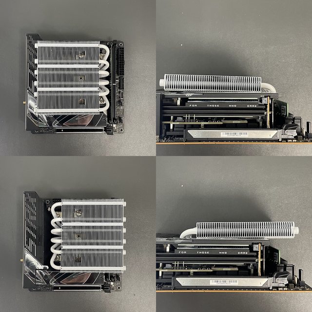加映,AXP-120裝ROG Z790-I的情況,AXP-120銅底到鰭片下方避讓高度為35.8mm。