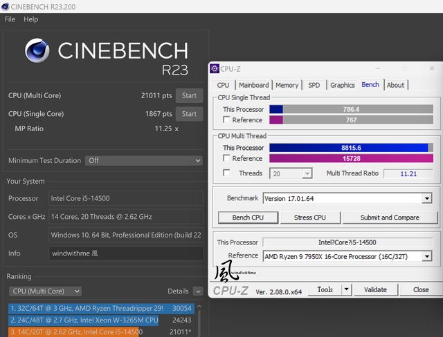 CPUZ單線程效能超越7950X讓人有點驚訝。