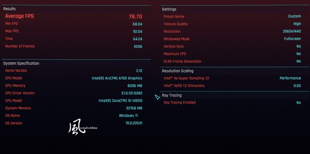 XeSS開啟Performance 1440p=> Average FPS 78.70