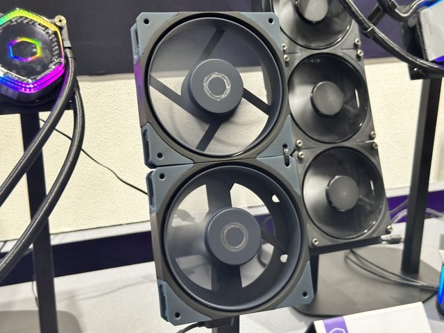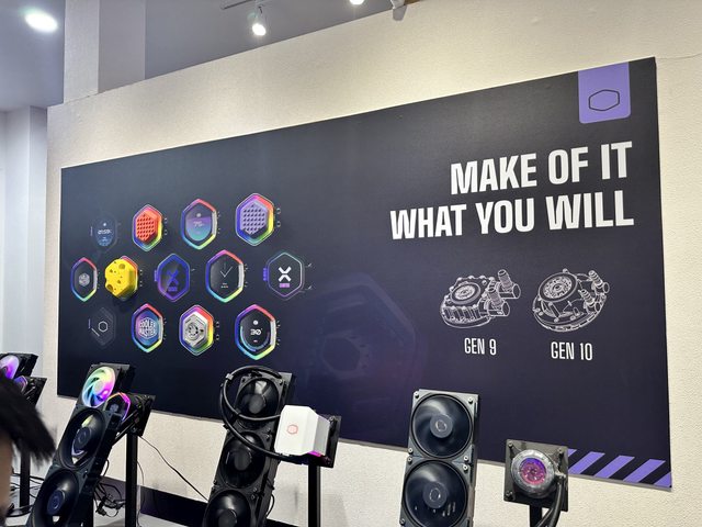 酷碼本次也展出不少風扇,現場直接將新品風扇(跟既有產品的海報)擺成風扇牆。
