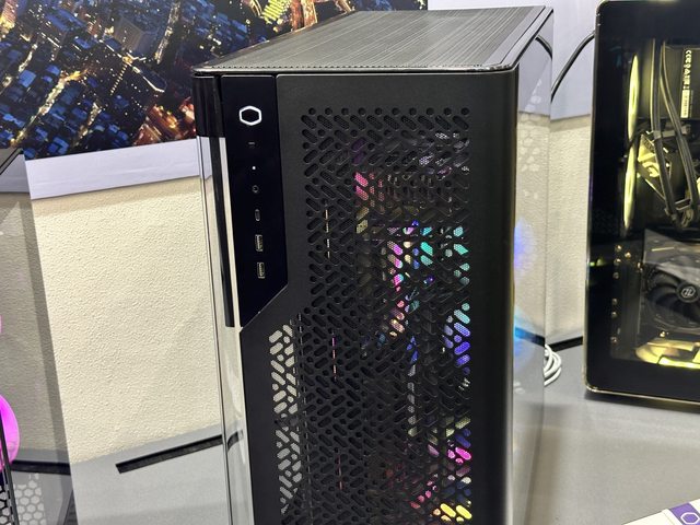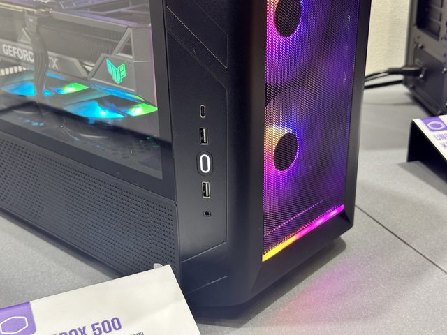 新版MASTERBOX 500,正面一樣為網狀面版,上下帶有ARGB燈效,IO位於側邊。