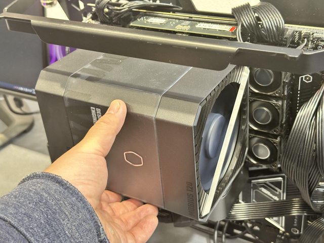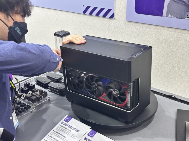 的迷你主機,但在需要時能拆除把手上蓋,直接在頂上插上RTX4090 BTF顯示卡。