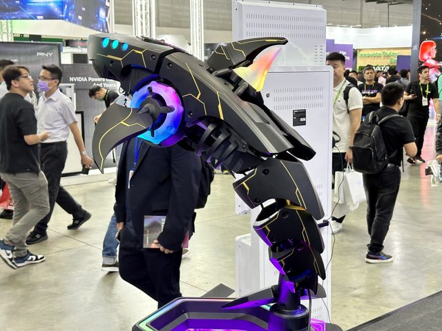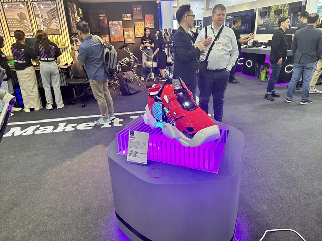 入口有展示鯊魚一體機,不同的是本次展出黑鯊版本,與銀色版不同的是外殼線條採用金