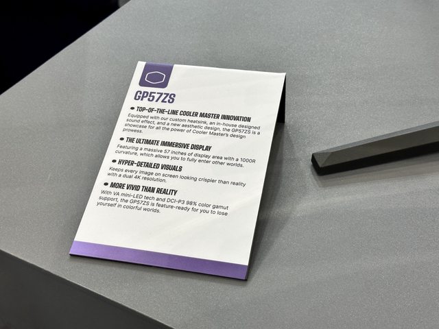 現場焦點是這款57吋超超寬螢幕,型號為GP57ZS,為比例32:9、miniLED、1000R曲度的VA
