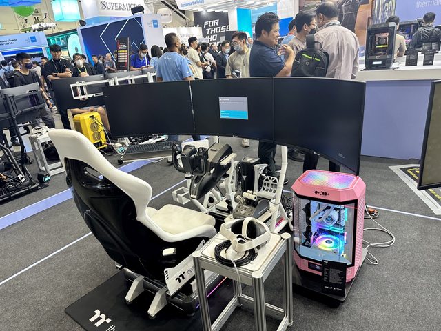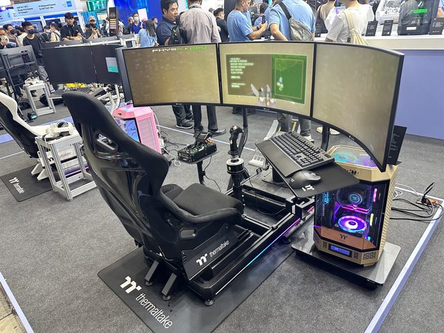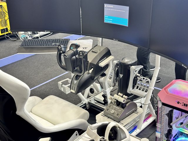 TT今年度也展出賽車座艙,座椅、支架及螢幕架是TT整套的,但飛行搖桿那些則需自行準