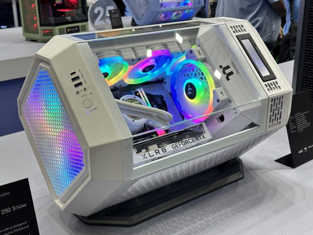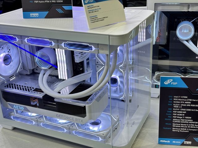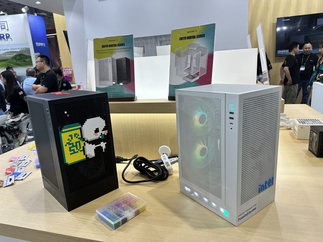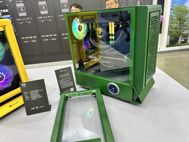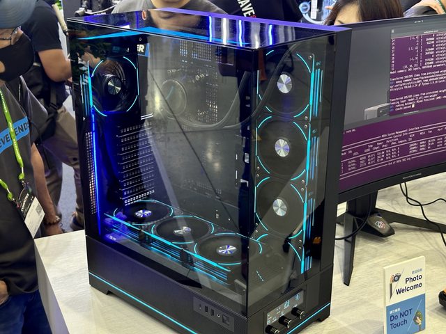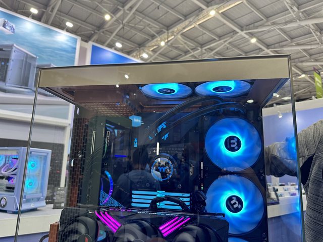 全漢也推出三面玻璃全景機殼,前方、左側及上蓋都是玻璃,搭配新款積木風扇展示。